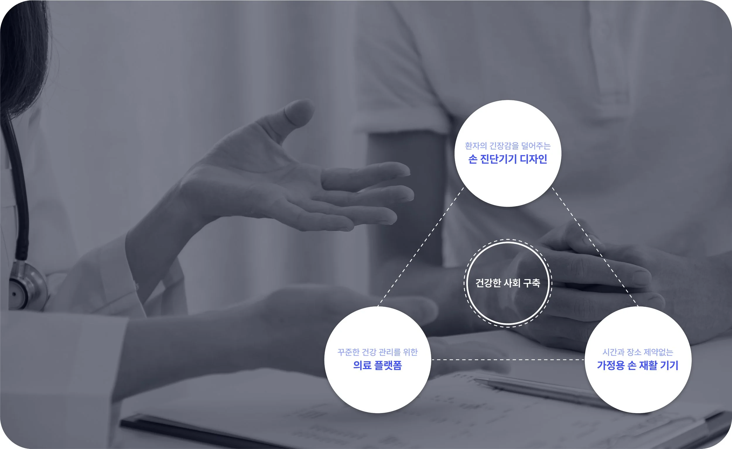하지만 손 건강 관리는 간과되기 쉬우며, 건강 진단과 꾸준한 재활이 어려워 많은 사람들이 불편을 겪고 있습니다.